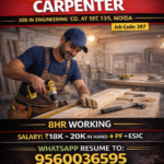 Job Code:397 Carpenter Job in Engineering Co. At Sec 135,Noida8hr workingSalary- 18k-20k in hand + PF + ESIC 18-20k plus PF & Esic Sec 135, Noida Full Time